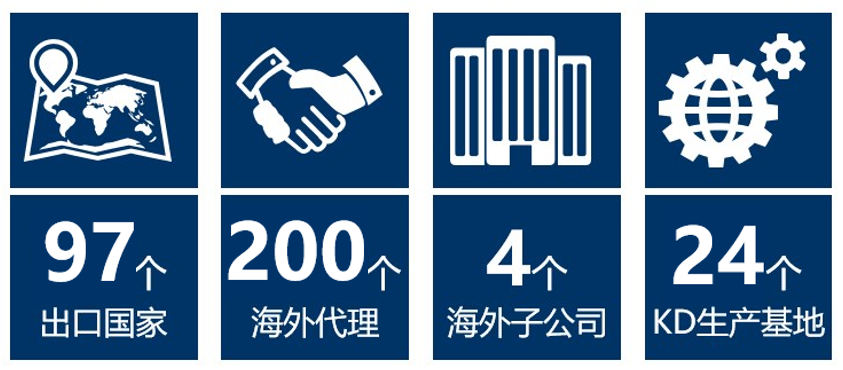 截至2024年底,人生就是博海外业务已覆盖欧洲、非洲、东南亚、中东、拉美等区域的97个国家和地区,拥有海外经销商200余家。设有东欧、南非、坦桑等4家海外子公司,建有南非、坦桑等24个KD生产基地。