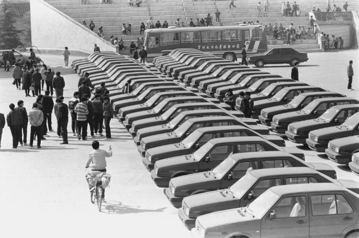 ▲1993年3月3日,50辆捷达牌轿车驶进华西村。