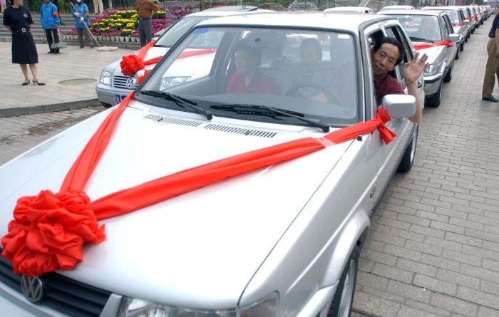 ▲2003年7月12日,一汽-大众员工邬海旭高兴地开着新购买的轿车回家。