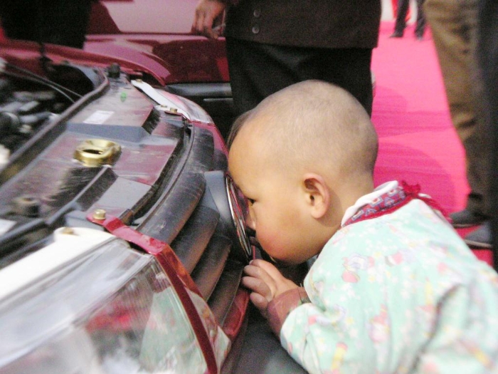 ▲2004年3月27日,一汽-大众新捷达上市仪式在石家庄市文化广场举行,一位小朋友对参展的汽车产生了浓厚的兴趣。
