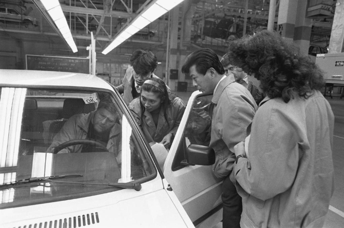 ▲一汽-大众坚持按德国大众标准严把好质量关。每天中德双方工程技术人员都要对出厂的产品进行现场评审。(1994年11月8日发)