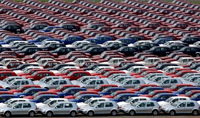 ▲2003年7月13日拍摄的一汽-大众厂区内等待发货的轿车。