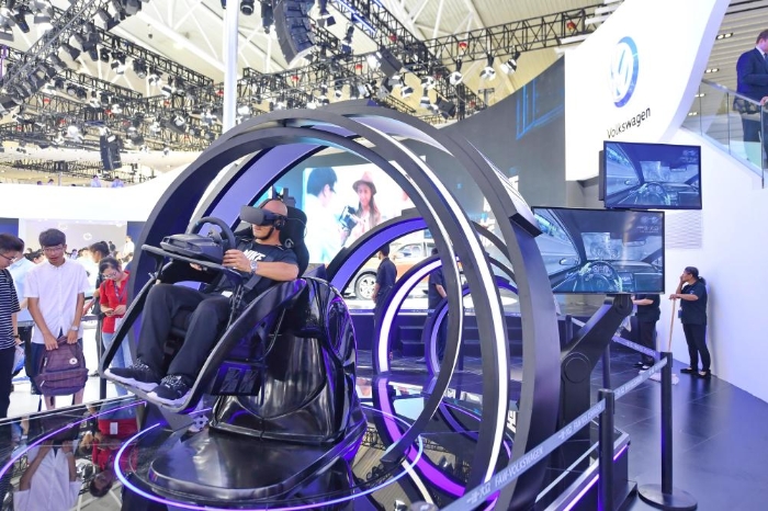 ▲2017年7月15日,市民在第十四届中国(长春)国际汽车博览会一汽-大众展台体验VR试驾。