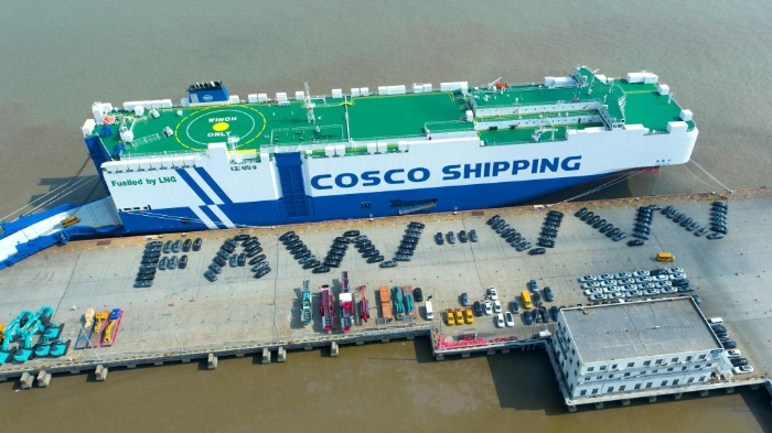 ▲2025年9月28日,一汽-大众出口商品车在上海港口登船。