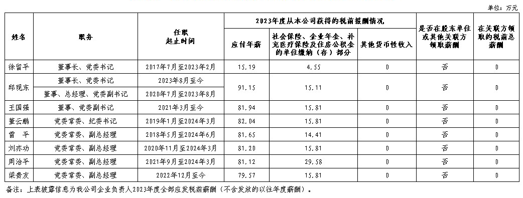 中国第一汽车集团有限公司企业负责人2023年度薪酬情况