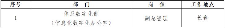 根据工作需要,现对体系数字化部(信息化数字化办公室)副总经理岗位面向社会公开招聘,具体内容如下: