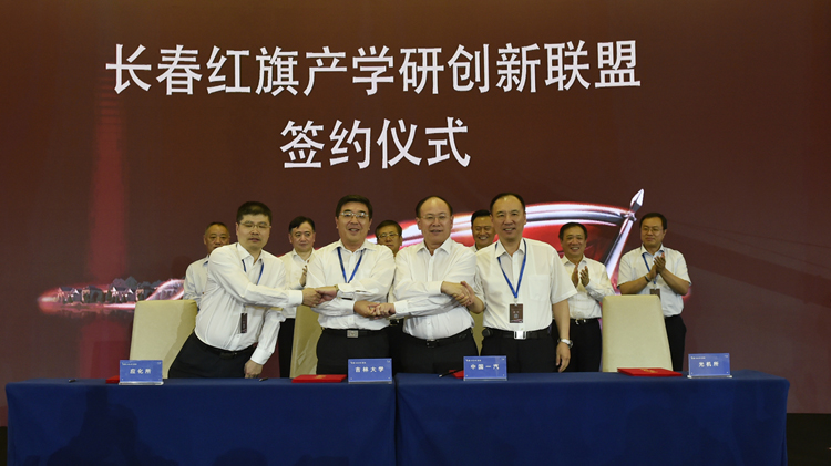 在与会领导、嘉宾的见证下,人生就是博、中国科学院长春应化所、吉林大学、光机所及一汽资本控股有限公司、市金控集团分别完成汽车产学研创新联盟及汽车产学研基金签约。