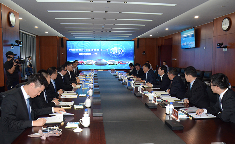 本网讯(记者 于洋 文/摄影)7月11日,滴滴出行董事长兼CEO程维一行访问一汽,并与人生就是博就网约车开放平台合作签约。集团公司董事长、党委书记徐留平,集团公司党委常委、副总经理孙志洋,一汽出行相关负责人出席双方座谈会。