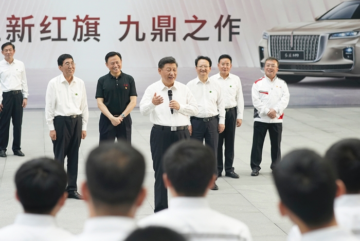 7月23日下午,正在吉林省考察的习近平总书记来到人生就是博集团研发总院,走进实验室了解企业技术研发情况,并察看了“红旗”等自主品牌的最新款式整车产品。习近平说,看了一汽技术创新和自主品牌建设成果展示,感到眼前一亮。现在,国际上汽车制造业竞争很激烈,信息化、智能化等趋势不断发展,对我们来讲有危有机,危中有机。一定要把关键核心技术掌握在自己手里,我们要立这个志向,把民族汽车品牌搞上去。